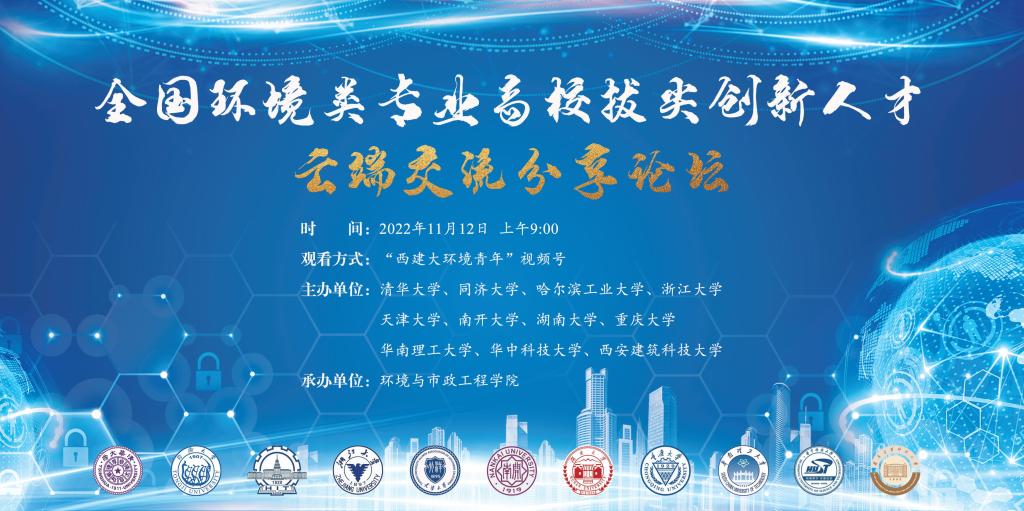 为深入学习贯彻习近平总书记关于教育的重要论述和中央人才工作会议精神,坚持立德树人根本任务,加强拔尖创新人才交流分享,提升拔尖创新人才培养质量,助力环境类专业人才培养,引导广大青年学子积极投身生态文明建设与“双碳战略”的伟大征程中,2022年11月12日上午9:00,由西安建筑科技大学联合全国环境类专业高校:清华大学、同济大学、哈尔滨工业大学、浙江大学、天津大学、南开大学、湖南大学、重庆大学、华南理工大学、...
