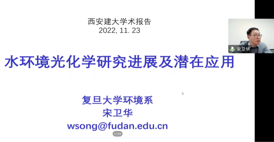 2022年11月23日下午,77779193永利官网第14期学科前沿青年讲座顺利举办。本期活动特邀复旦大学宋卫华教授担任主讲嘉宾,主题围绕“水环境光化学”展开,我院师生300余人参会交流。讲座由给排水科学与工程教研室的马晓妍副教授主持。会议伊始,马晓妍老师对宋卫华教授的到来表示欢迎与感谢,并简要介绍了宋老师的研究方向、学术成果等相关情况。图1.马晓妍副教授主持讲座宋卫华教授以《水环境光化学研究进展及潜在应用》为题,围绕环境光...