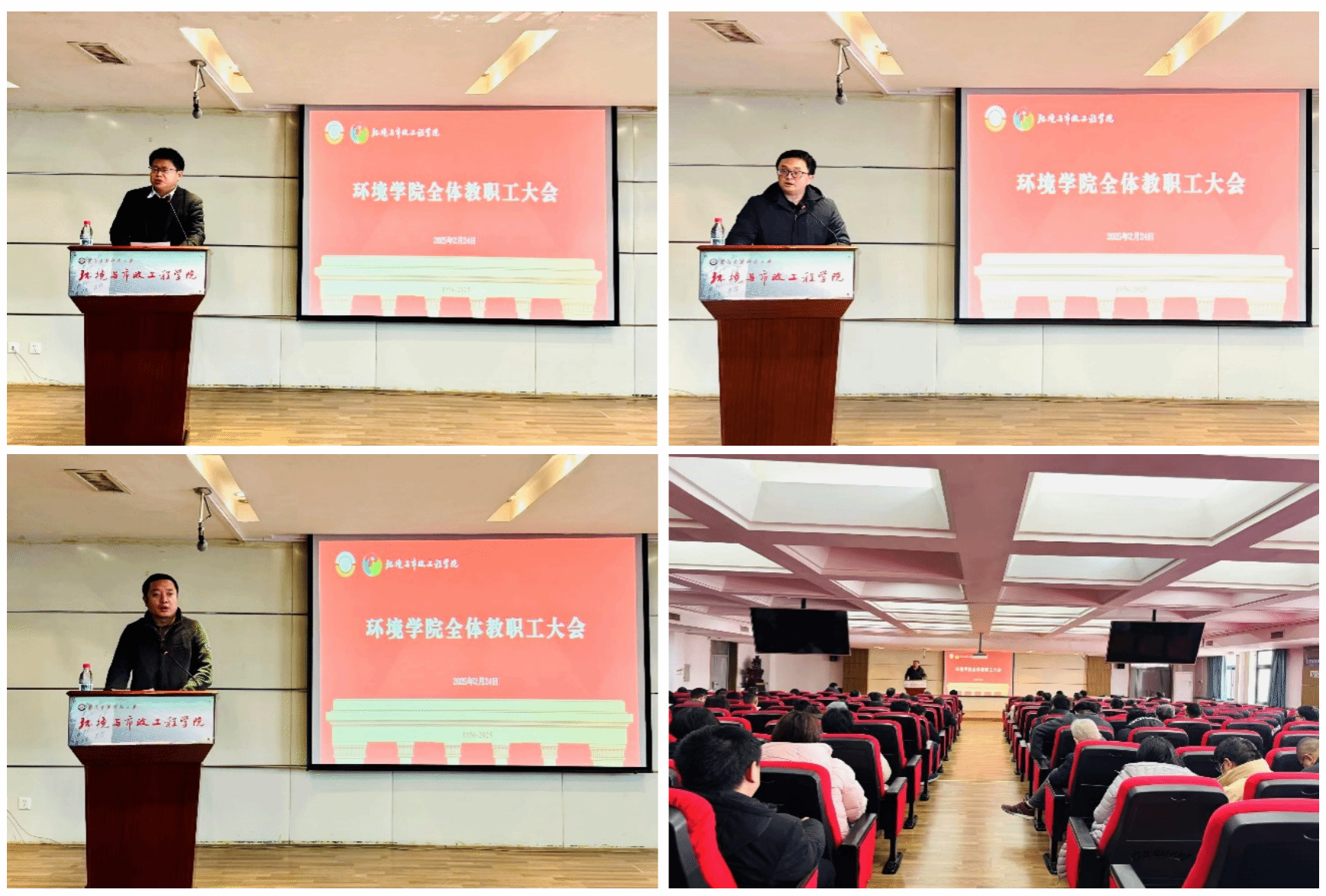 2月24日上午,77779193永利官网在环工楼716报告厅召开全体教职工大会,会议传达学习了校党委书记朱晓渭、校长赵祥模在学校2025年党委全委(扩大)会议上的讲话精神,安排部署2025年工作。会上,学院领导班子成员对分管工作计划进行了汇报,院长卢金锁回顾总结了寒假工作,并对2025年学院重点工作进行了安排,学院全体教职工参加会议。会议由学院党委书记曹宏伟主持。