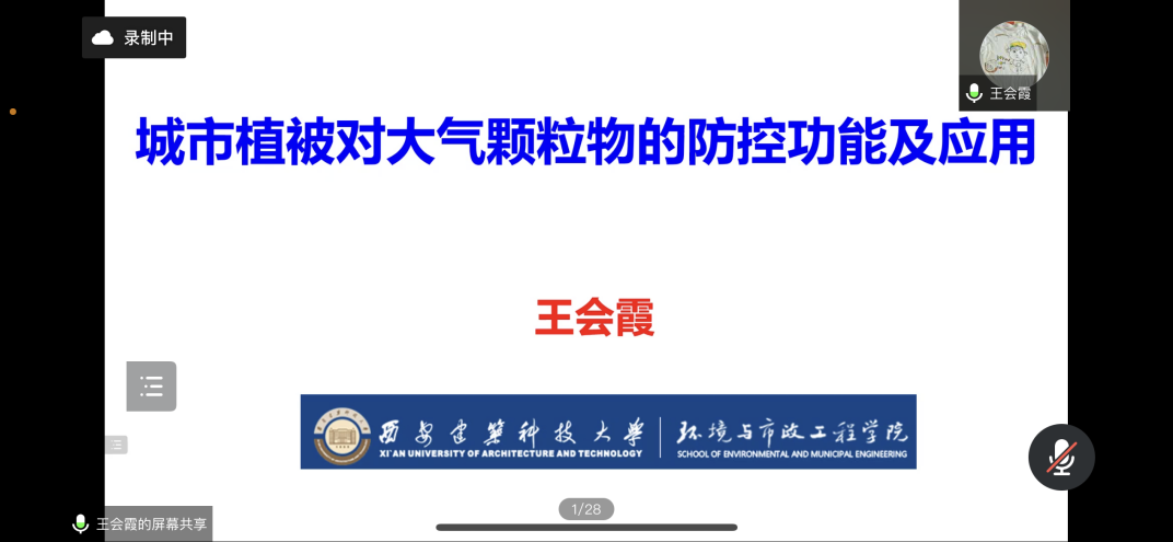 王会霞老师以《城市植被对大气颗粒物的防控功能及应用》为题,她指出随着全球城市化进程的推进,大气颗粒物污染已成为当今各国面临的最严重的环境问题之一。通过城市植被改善和净化环境的功能,提出了适宜树种的选择、配置模式以及大气颗粒物的定量评估,对于构建高效防控大气污染的城市森林、城市规划等具有重要意义。