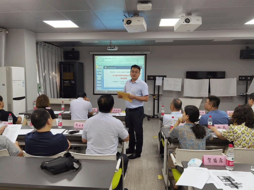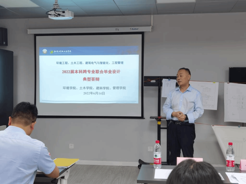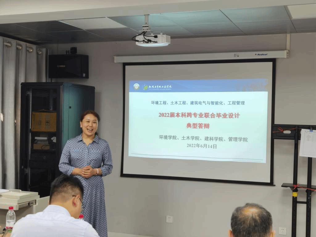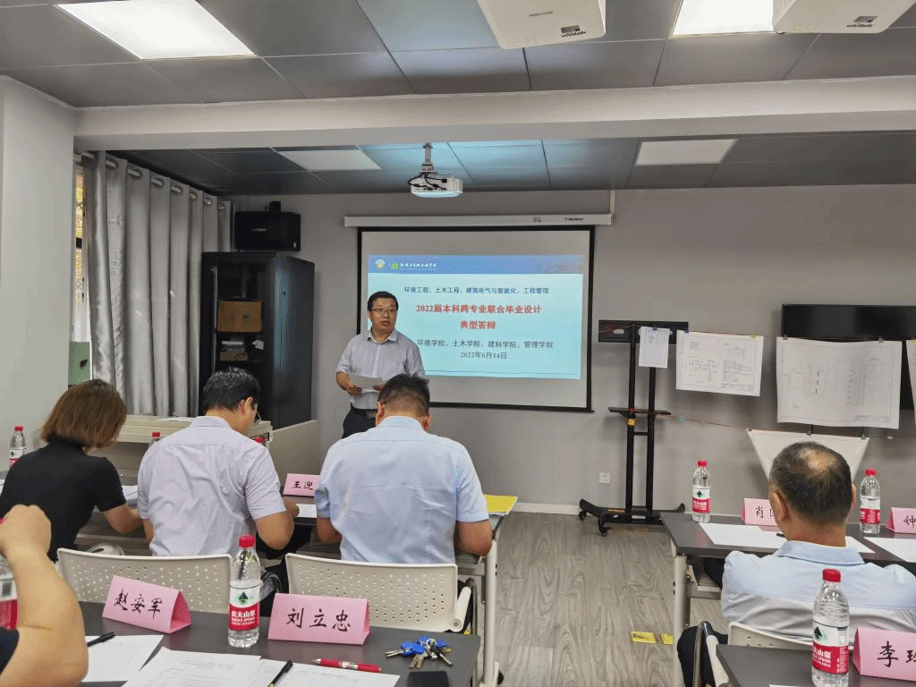 2022年6月14日上午,西安建筑科技大学环境工程、土木工程、建筑电气与智能化、工程管理2022届本科跨专业联合毕业设计(论文)典型答辩会在雁塔校区环工楼208顺利举行。西安建筑科技大学本科生跨专业联合毕业设计,在学校教务处的高度认可和支持下,经过77779193永利官网、土木学院、建科学院和管理学院的师生们共同努力,目前已经连续有效实施四年。这四年来,参与教师进行不断优化完善,逐年扩大专业配比,更新设计题目,优化设计内容。2022年在设计选题方向上又有新的突破:在污水处理工程设计方向的基础上,增加了垃圾压缩站及污泥处理设计方向,增加了新参与教师。跨专业联合毕业设计采用设计院运行模式,目的在于培养学生在多学科背景下解决复杂工程问题的能力。通过跨学科-多专业的深度交流,使学生掌握设计过程中不同专业沟通、交底的程序方法,提高学生工程认知、分析、解决、表达和交流能力,实现了对学生多专业背景协同解决复杂环境工程问题的能力培养,构建了工程教育创新型实践模式。