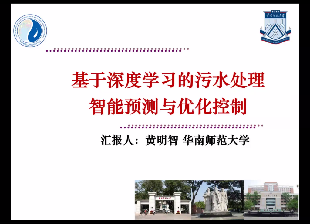 黄明智教授以《基于深度学习的污水处理智能预测与优化控制》为题,首先围绕人工智能与污水处理学科交叉融合背景,阐述了污水中水质软测量预测的各种方法,并指出通过数据域迁移的软测量方法,可解决污水处理系统复用的问题;随后介绍了基于深度学习的污水处理优化控制系统;最后向大家展示了污水处理智能系统应用于现场的典型案例。