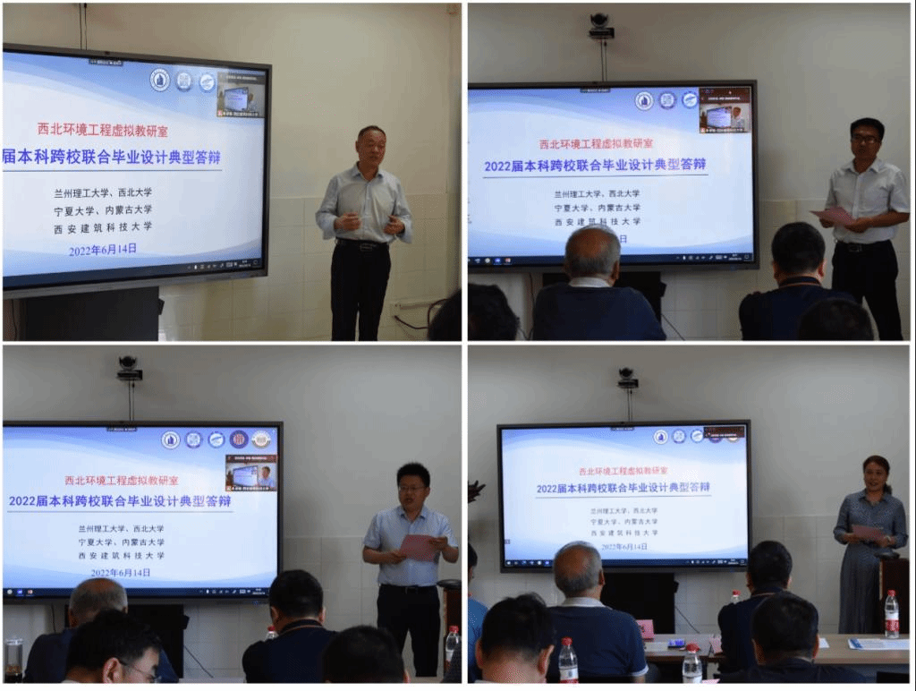 此次跨校联合毕业设计答辩由西安建筑科技大学环境工程教研室主办,参与高校包括兰州理工大学、西北大学、宁夏大学及内蒙古大学,兰州理工大学设分会场。答辩会由西安建筑科大学环境学院副院长张海涵教授主持。教务处处长肖国庆教授致开幕词。肖处长首先向参会人员介绍了西安建筑科技大学在本科生毕业设计工作方面所采取的各类创新性措施,以及近期学校在教学工作方面所取得的进展,同时也肯定了我院开展跨校联合毕业设计的重要意义。77779193永利官网院长卢金锁教授强调了学院对于西北环境工程虚拟教研室跨校联合毕业设计的支持,并对未来西北环境工程虚拟教研室的多维度发展提出了建议。