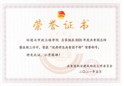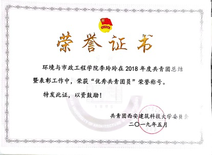 “抓住青年时代特征,做好青年思想教育”,团支部带领大家积极开展团日活动、马列小组学习,为的就是提高大家的思想觉悟。同学积极递交入党申请书,以期更好奉献社会。经过班级同学的努力,班级现有中共党员5人,入党积极分子11人。在五四评优表彰中,团支部更是获得西安建筑科技大学 “五四红旗团支部”光荣称号。