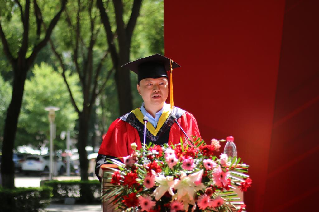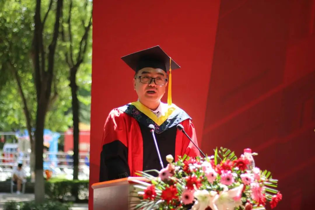 接着,教师代表,环境科学教研室张崇淼教授发言。在同学们离开建大校园,准备踏上新征程时,张老师为毕业生的行囊里再放上“三勿三多”的希望:勿躺平,多上进;勿自负,多谦恭;勿空谈,多实干。相信张老师对同学们的美好祝愿,定会让同学们满载美好憧憬,在未来的岁月里挂起云帆,驶向成功的彼岸!