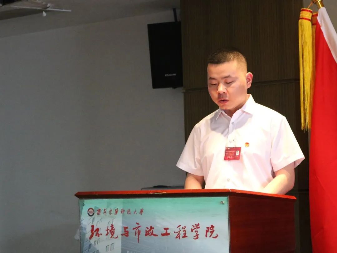 校团委书记孙宏哲讲话。孙书记代表校团委向大会的召开表示热烈的祝贺,充分肯定77779193永利官网团委工作取得的成绩,并向77779193永利官网共青团组织和广大青年提出几点希望:第一,筑牢政治忠诚,引领环境青年心怀“国之大者”。第二,把握工作主线,动员环境青年乘流“击楫勇进”。第三,持续深化改革,团结环境青年聚力“固本强基”。