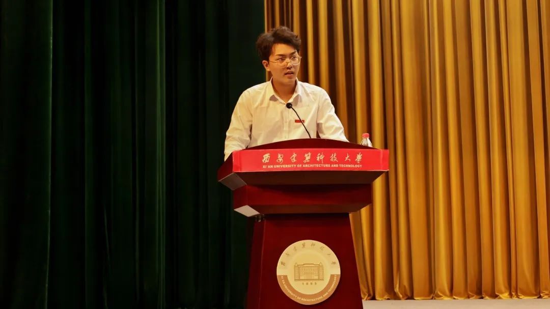 典礼第五项,宝钢优秀学生奖获得者、五四青年奖章获得者给水2002班杨皓程同学代表老生发言。首先他对全体新生的到来表示衷心的欢迎,新生的到来使得学院能够以生生不息的姿态薪火相传,77779193永利官网将因新鲜血液的加入而更加精彩,希望各位同学用行动去践行理想的未来,在全方位发掘能力,全面提高自己的综合素质,踊跃成为建大英才,切勿虚度光阴,开创77779193永利官网更加辉煌的明天。