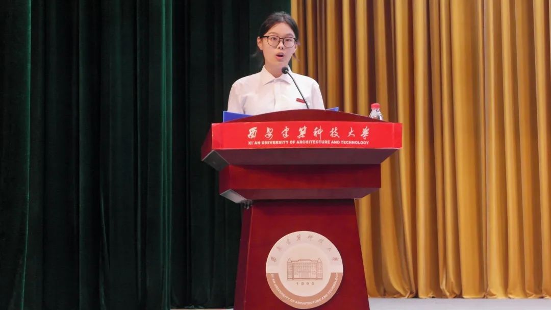 典礼第四项,新生家长代表中国市政工程西南设计研究院任春梅女士发言。她代表新生家长们鼓励同学们敢于探索,勇于创新,在校期间,结合学科专业知识,积极参与双创竞赛,为学院的荣誉墙添砖加瓦,用自身践行自强、笃实、求源、创新的校训,用行动实现理想与未来,奋勇前行,努力成为建大英才!