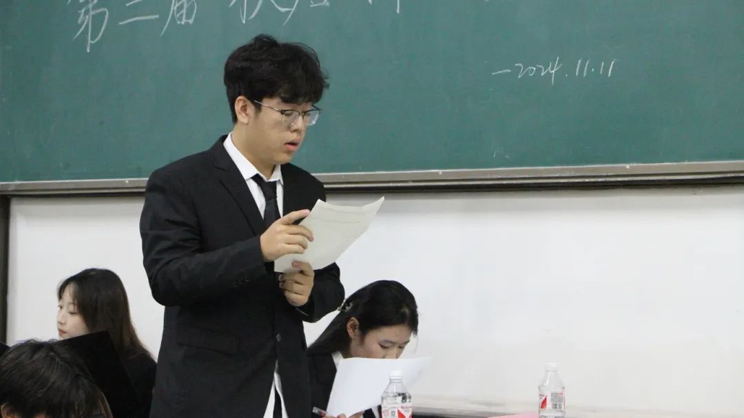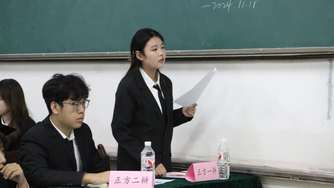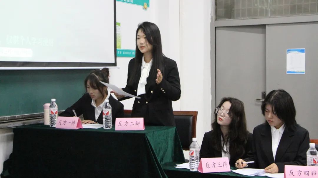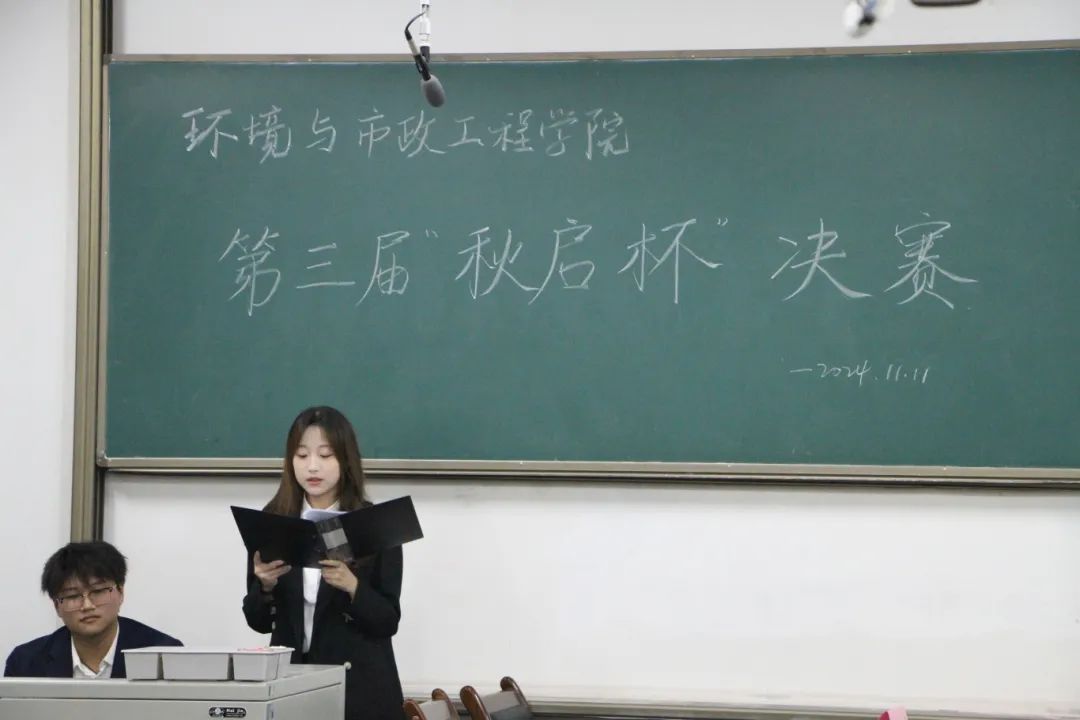 主持人致开幕词后,辩论赛决赛正式开始。本次辩论赛的辩题是年轻人找搭子是社交升级/降级,正方是环工2403代表队,反方是环科2402代表队。