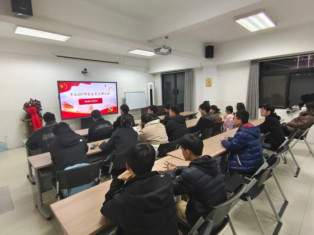 为深入学习贯彻党的二十届三中全会精神和习近平总书记近期重要回信精神,进一步提升支部党员的政治理论素养和思想觉悟,市政2201研究生党支部于2024年11月27日在环工楼712会议室组织开展专题学习会,支部全体党员参加。