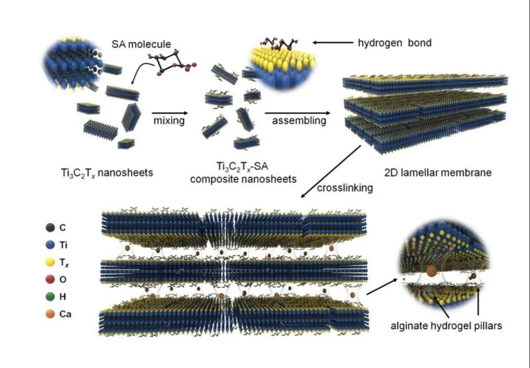 石墨烯的发现引发了人们对二维材料的广泛关注,近年来,各类二维材料已经在多个重要应用领域展现了极大潜力。目前,利用二维纳米材料进行分离膜的制备,成为膜分离技术领域的前沿课题。与传统高分子膜相比,二维层状薄膜突破了传统膜分离过程中渗透性与选择性之间此升彼降的矛盾关系,可对不同尺寸量级的物质实现更加精确、快速的筛分与传质。但是,目前二维薄膜由于其在水中结构不稳定,导致其在艾米级级别的离子分离效果远低于理论预测值。